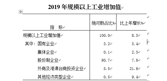 2019年,全市规模以上工业企业数达到936户,比上年增加6户。全年规模以上工业增加值同比增长8.3%。分经济类型看:外商及港澳台投资企业、其他经济类型企业和股份制企业增长较快,分别增长21.6%、9.4%和7.8%。分行业看:统计的34个行业大类中有27个行业增加值实现增长;在十大主要行业(累计增加值居前10位)中,酒、饮料和精制茶制造业,计算机、通信和其他电子设备制造业,金属制品业增长较快,增幅分别达到16.6%、13.8%和12.8%。