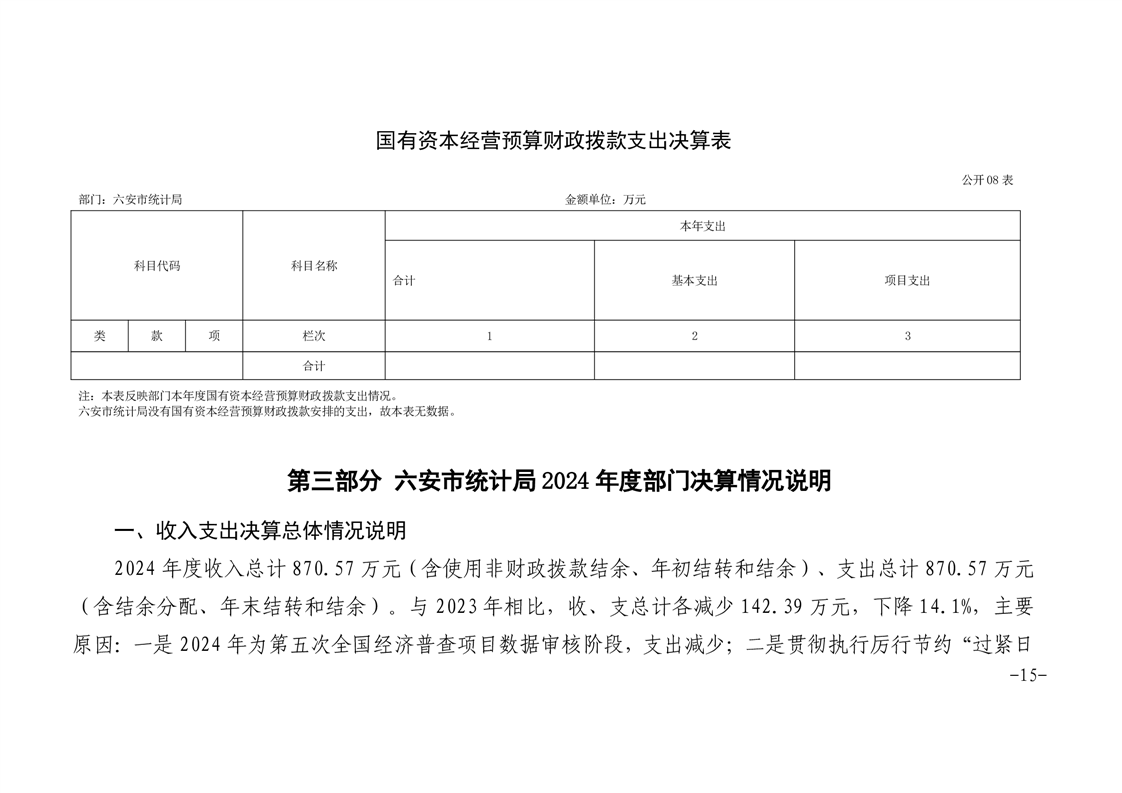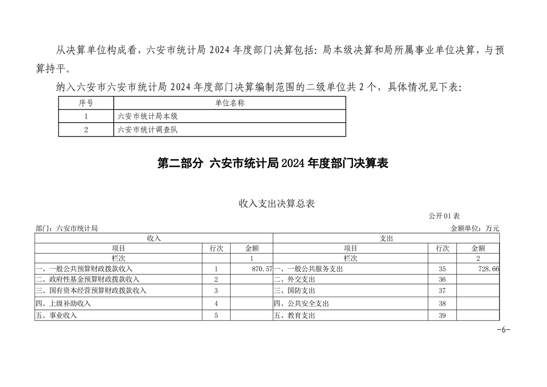 六安市统计局(六安市统计调查队)2024年部门决算
