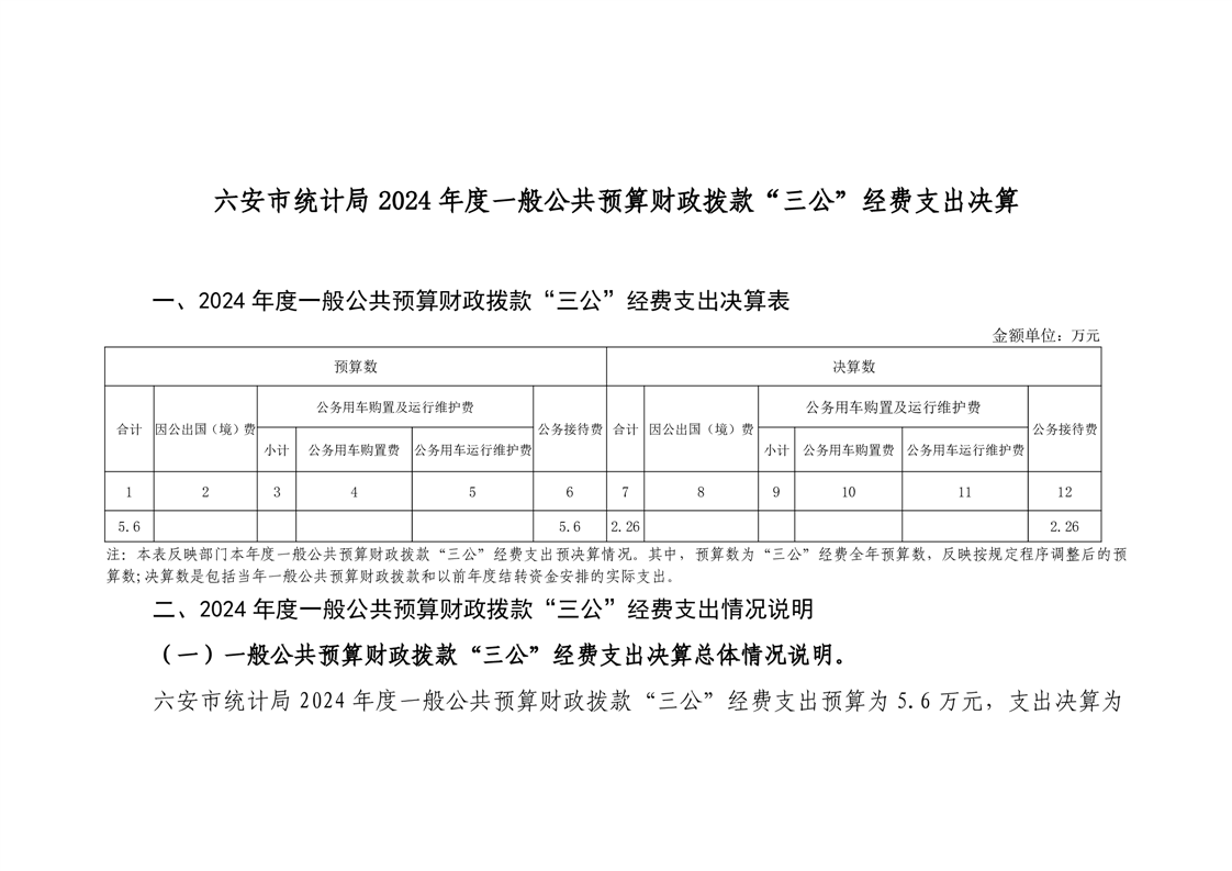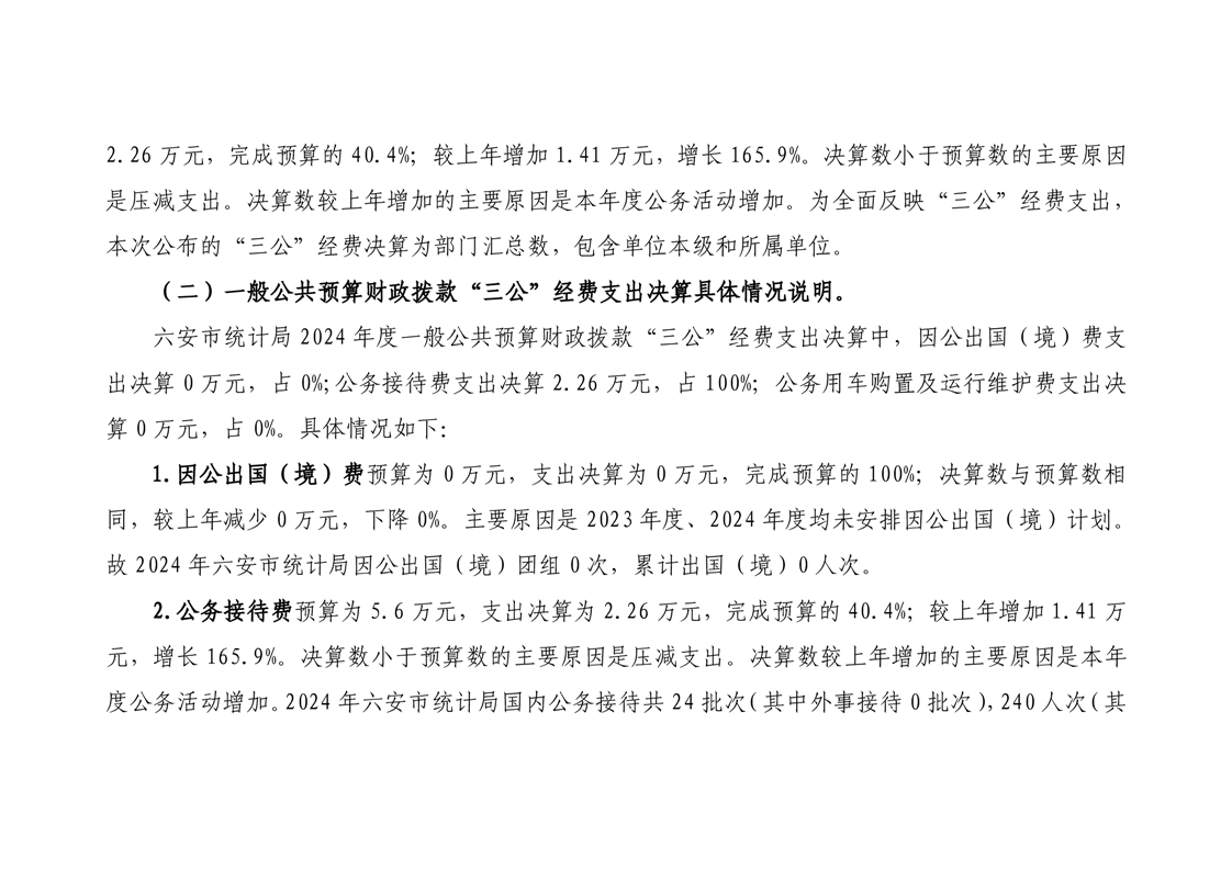 六安市统计局2024年“三公”经费决算