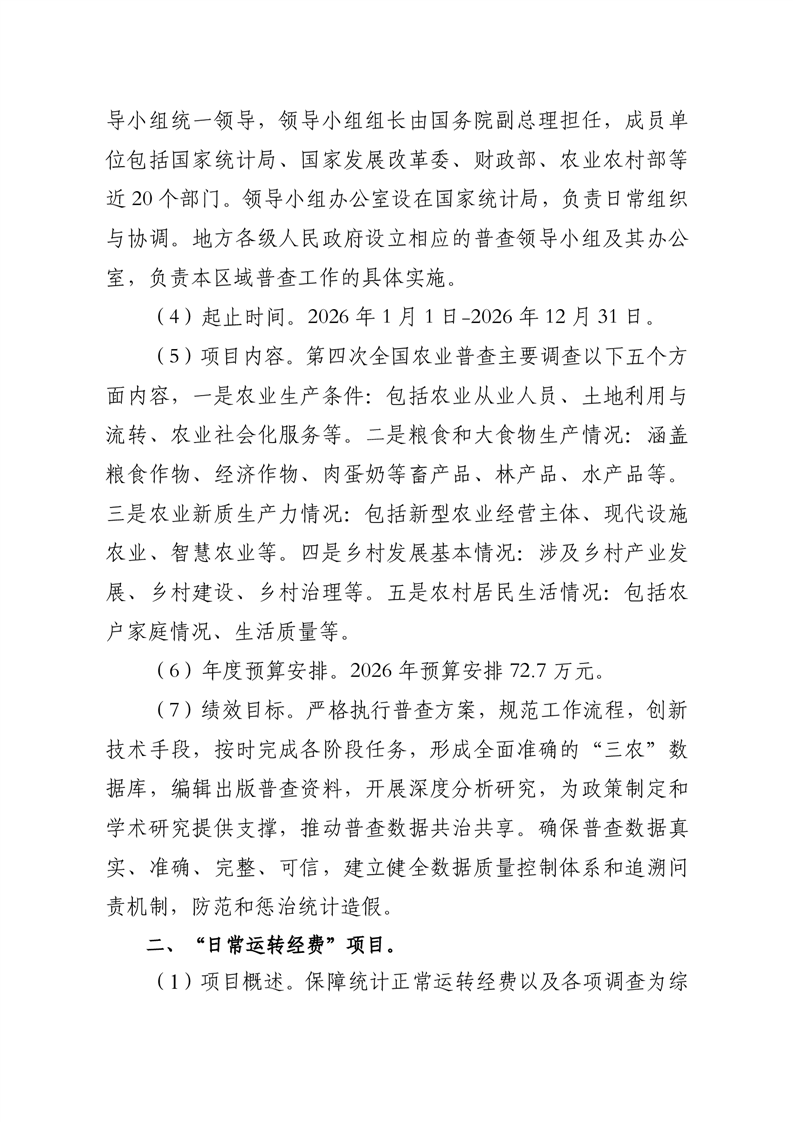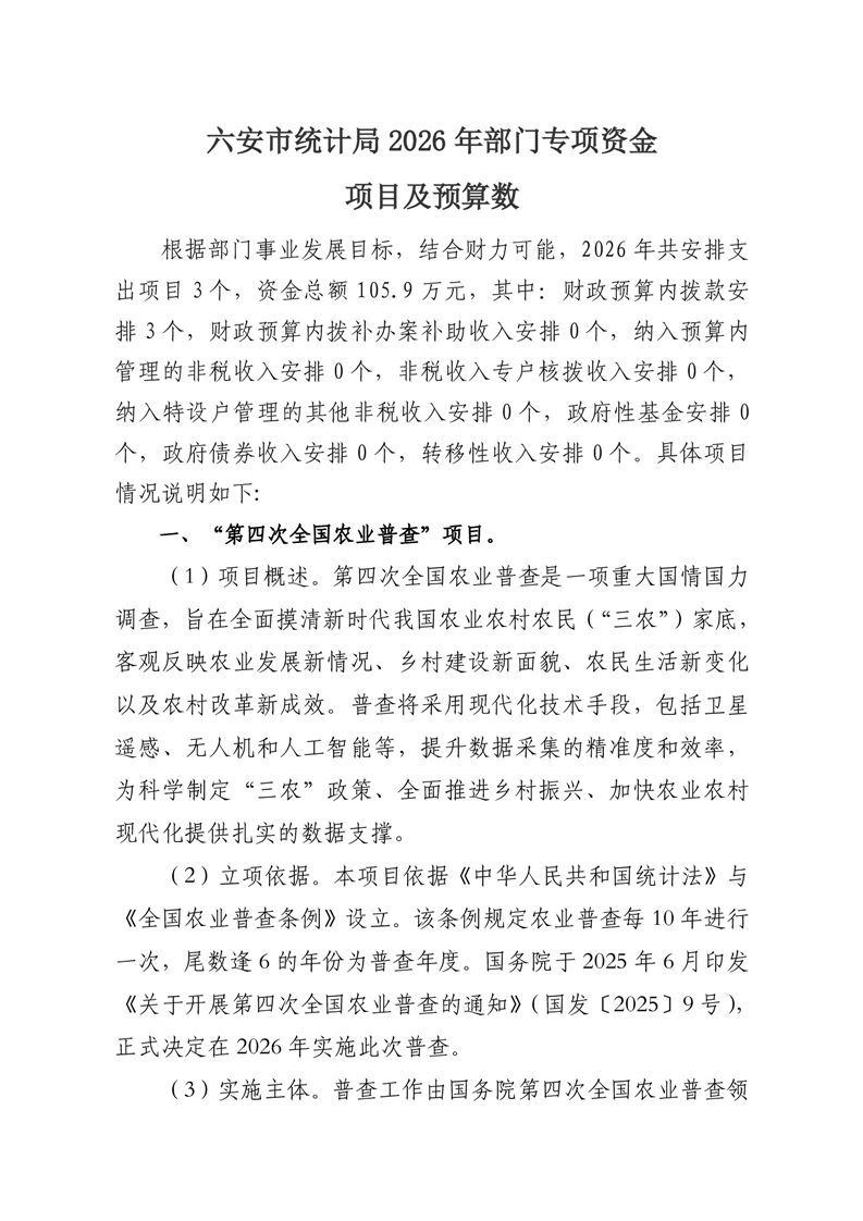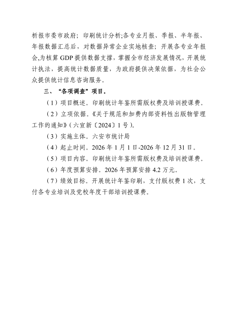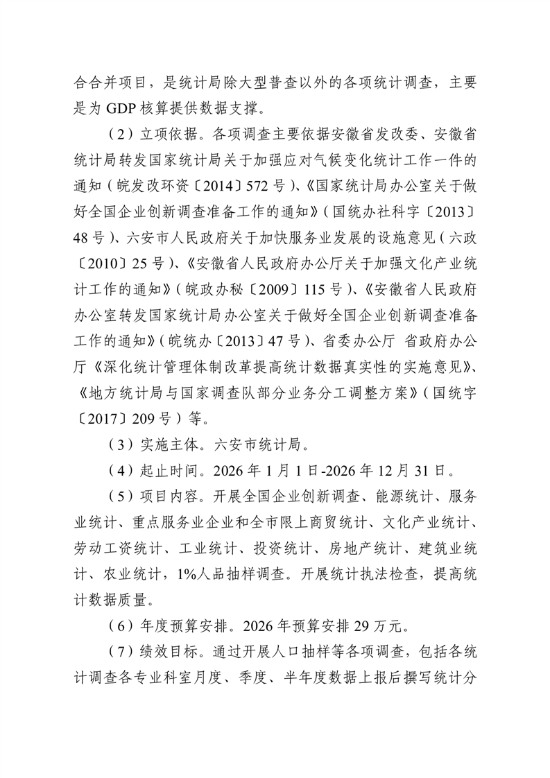 六安市统计局(六安市统计调查队)2026年专项资金预算