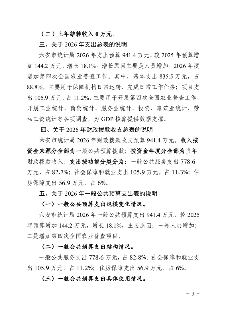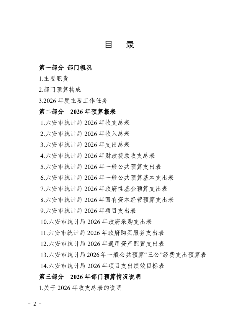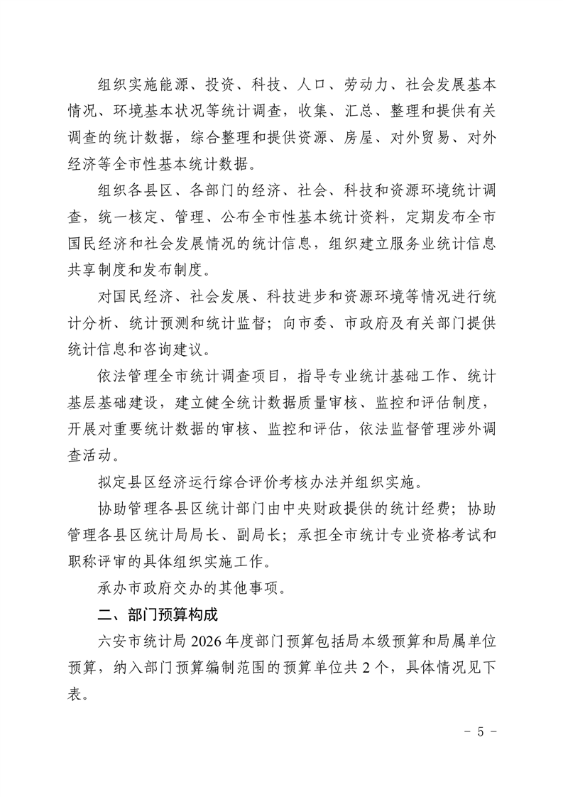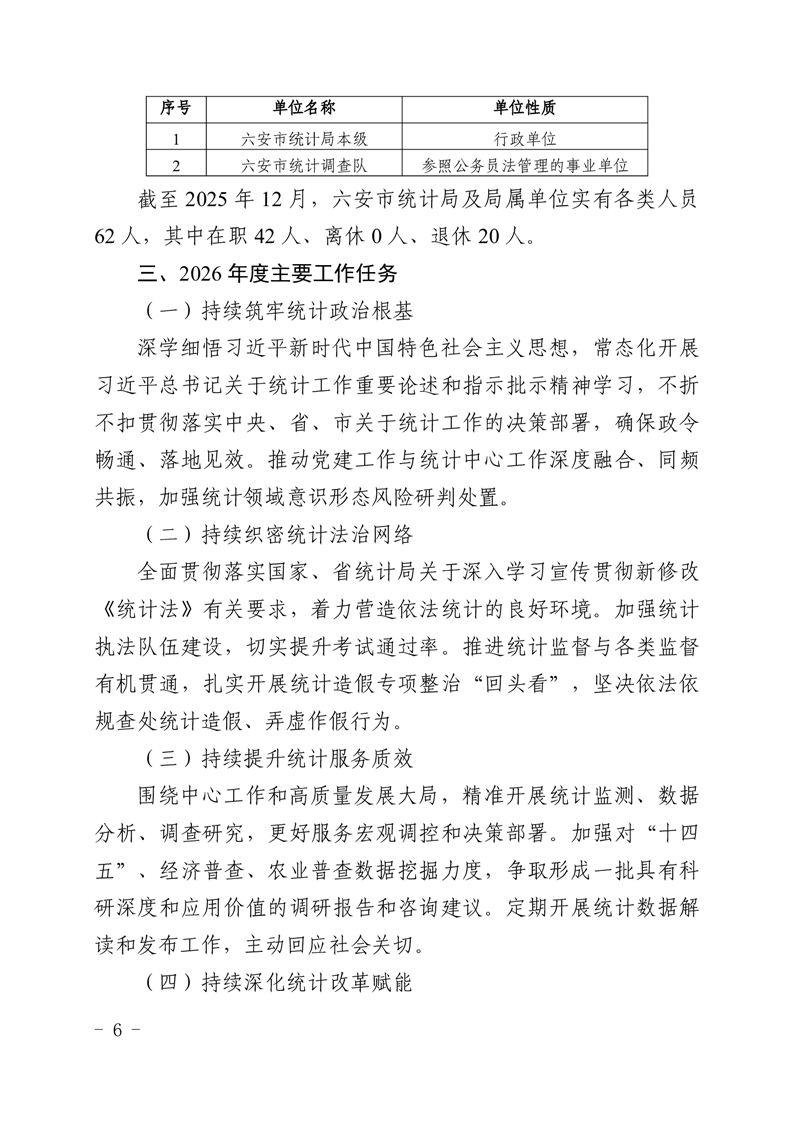 六安市统计局(六安市统计调查队)2026年部门预算公开