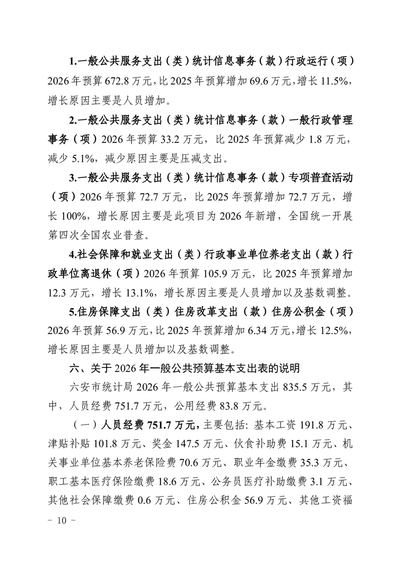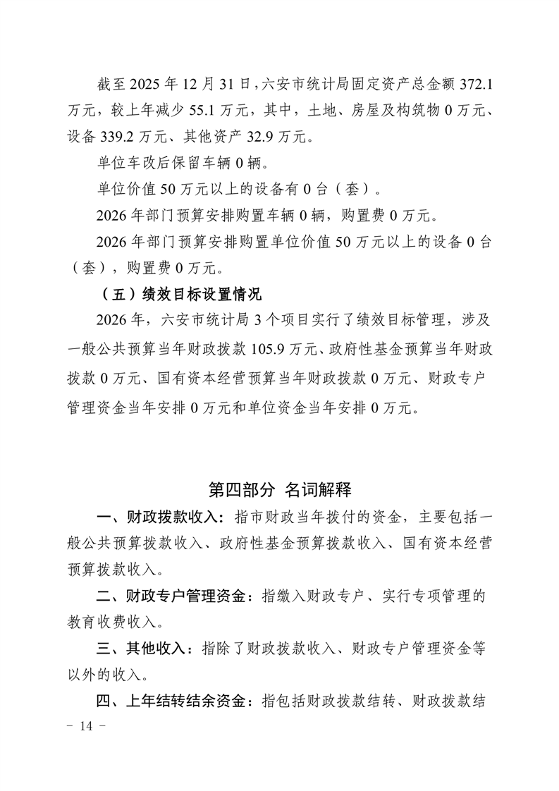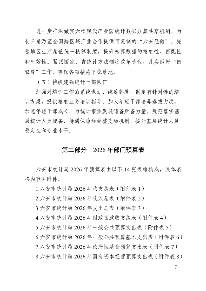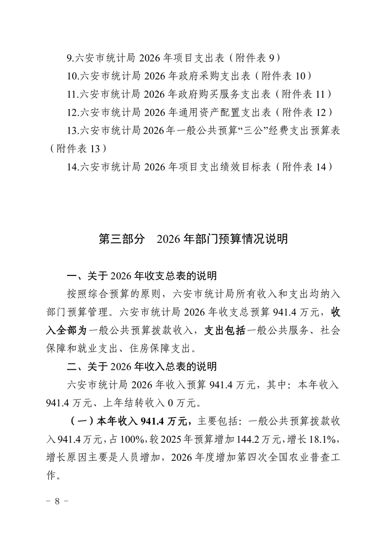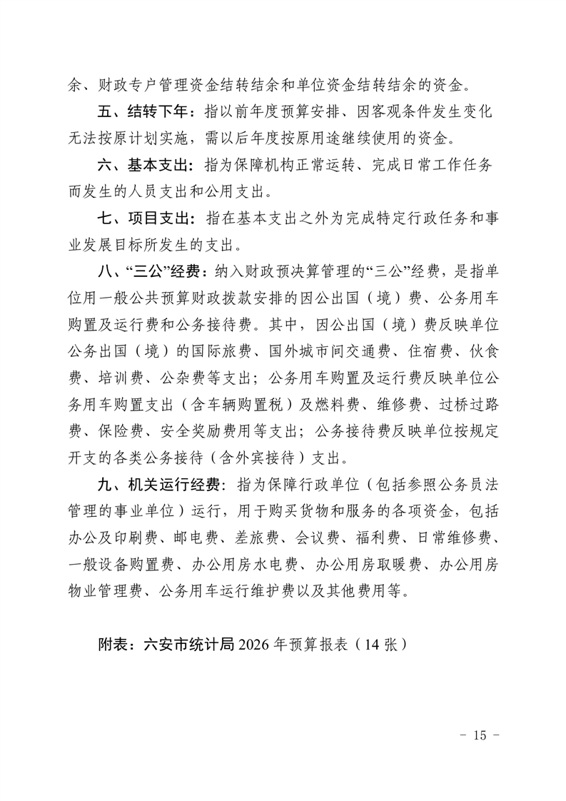 六安市统计局(六安市统计调查队)2026年部门预算公开